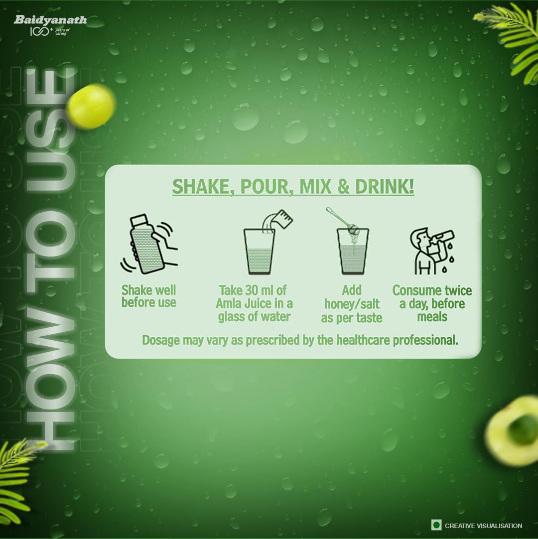 सर्वोत्तम परिणामों के लिए, बैद्यनाथ आंवला जूस को आमतौर पर पानी में घोलकर पिया जाता है। इसे सुबह खाली पेट लिया जा सकता है। स्वाद बढ़ाने के लिए इसमें मीठा या नमक मिलाया जा सकता है। जूस को खोलने के एक महीने के भीतर सेवन करने की सलाह दी जाती है।