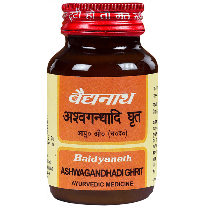 बैद्यनाथ अश्वगंधादि घृत का पारंपरिक रूप से सामान्य दुर्बलता, तंत्रिका दुर्बलता और यौन दुर्बलता को दूर करने के लिए उपयोग किया जाता है। यह अनिद्रा, तनाव और चिंता को कम करने, रक्त शर्करा के स्तर को नियंत्रित करने और मांसपेशियों की शक्ति बढ़ाने में भी मदद कर सकता है।