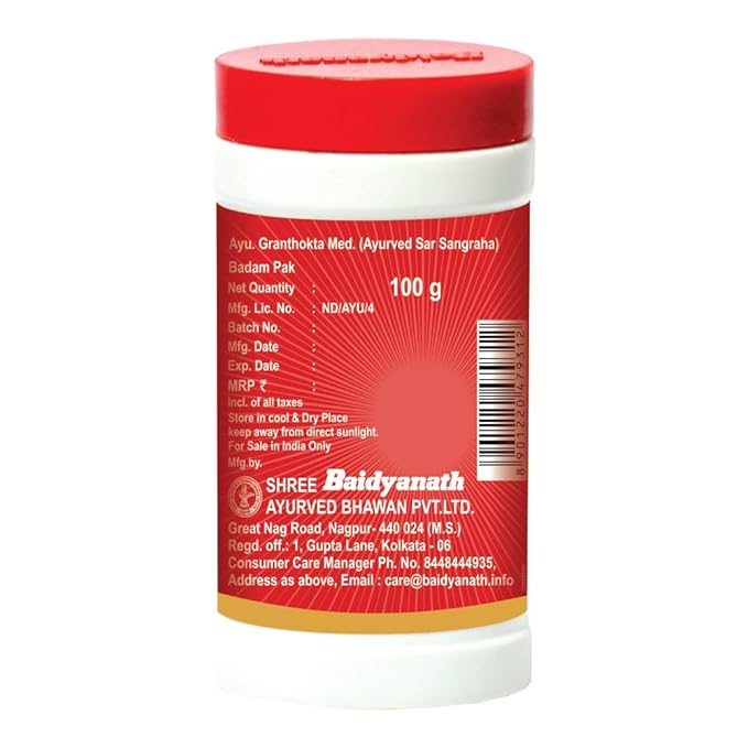 इस उत्पाद का पारंपरिक रूप से स्मृति और एकाग्रता में सुधार, मानसिक थकान और तनाव को कम करने, और शारीरिक एवं मानसिक सहनशक्ति को बढ़ाने के लिए उपयोग किया जाता है। इसका उपयोग प्रतिरक्षा को बढ़ावा देने और आँखों की थकान, कमज़ोरी और हल्के कब्ज जैसी समस्याओं को दूर करने में भी किया जाता है। बैद्यनाथ बादाम पाक बच्चों के मस्तिष्क विकास और तनावपूर्ण कार्यस्थलों का सामना कर रहे वयस्कों के लिए लाभकारी है।