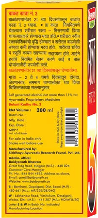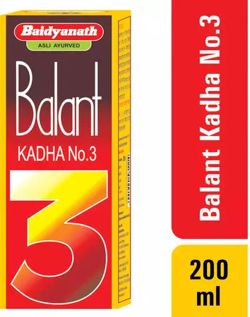 बैद्यनाथ बलवंत काढ़ा नंबर 3 का उपयोग प्रसव के बाद शक्ति बहाल करने और नई रक्त कोशिकाओं के निर्माण में सहायता के लिए किया जाता है। यह रक्त संचार को बेहतर बनाने में मदद करता है और कृमियों के कारण होने वाली जटिलताओं से राहत दिलाने में मदद कर सकता है। यह काढ़ा मतली, उल्टी, अपच और पेट फूलने की समस्या को भी दूर करने में मदद करता है।