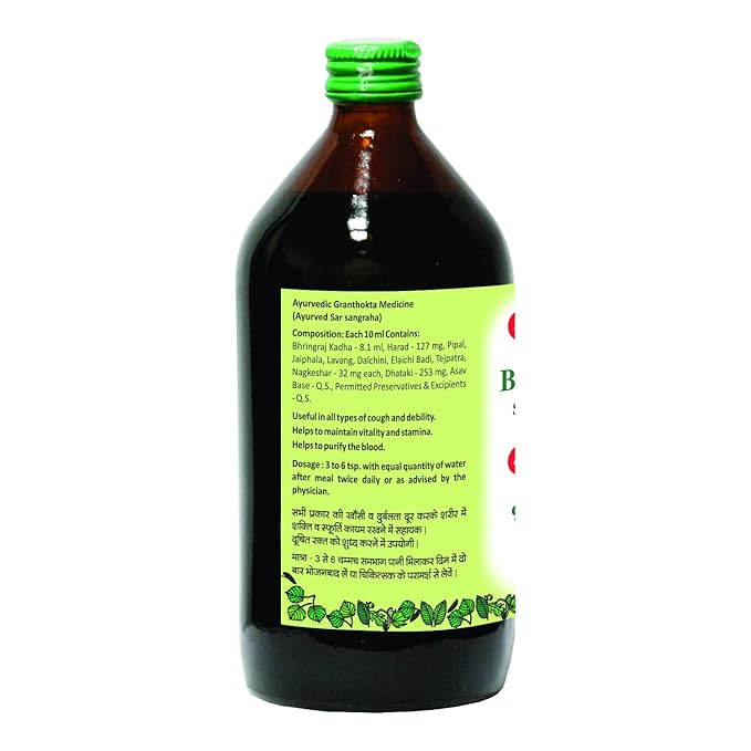 बैद्यनाथ भृंगराजासव में मुख्य सामग्री में आमतौर पर भृंगराज, हरीतकी, पिप्पली, जयफला, लवांग, दालचीनी, इलाइची, तेजपत्र, नागकेशर और गुड़ शामिल हैं। परंपरागत रूप से माना जाता है कि ये सामग्रियां टॉनिक के कथित लाभ प्रदान करने के लिए एक साथ काम करती हैं।