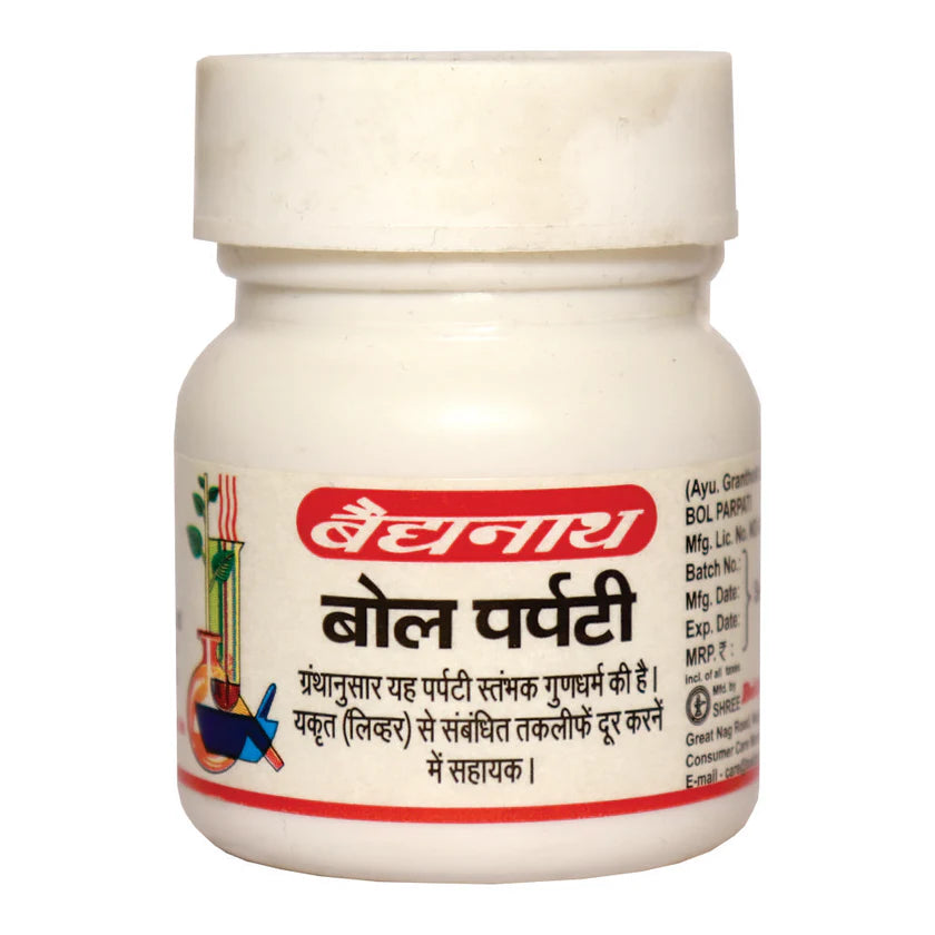 बैद्यनाथ बोल पर्पटी के मुख्य घटक हैं कज्जली (पारा और गंधक का शुद्ध और संसाधित मिश्रण) और बोल (कमिफोरा मिर्रा या लाल)। कज्जली अपने विषहरण और चिकित्सीय प्रभावों के लिए जानी जाती है, जबकि बोल अपने रक्तसंचारी गुणों के लिए जाना जाता है जो रक्तस्राव को नियंत्रित करने में मदद करते हैं। यह मिश्रण रक्तस्राव संबंधी समस्याओं का प्रभावी ढंग से समाधान करता है और गर्भाशय के स्वास्थ्य को बढ़ावा देता है।