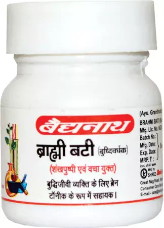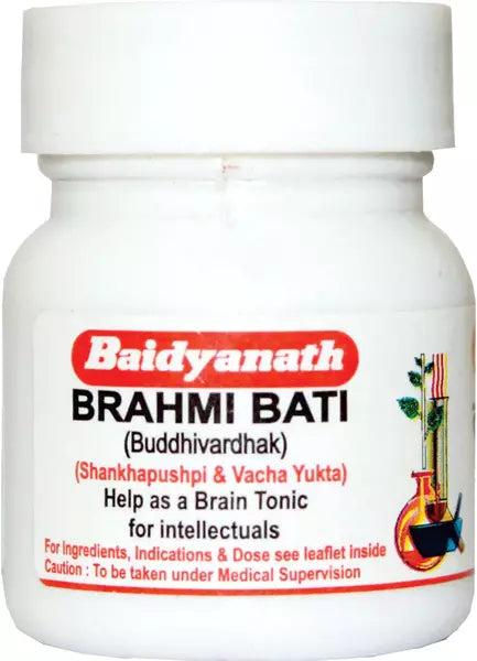 बैद्यनाथ ब्राह्मी बटी (बुद्धिवर्धक) का उपयोग स्मरण शक्ति और बुद्धि को बढ़ाने, एकाग्रता, ध्यान और मानसिक सतर्कता में सुधार के लिए किया जाता है। इसका उपयोग मानसिक थकान, तनाव, चिंता को कम करने और अनिद्रा से निपटने में भी किया जाता है। इस मिश्रण का पारंपरिक रूप से तंत्रिका तंत्र की कमजोरी और नींद में खलल से संबंधित स्थितियों के लिए उपयोग किया जाता है।