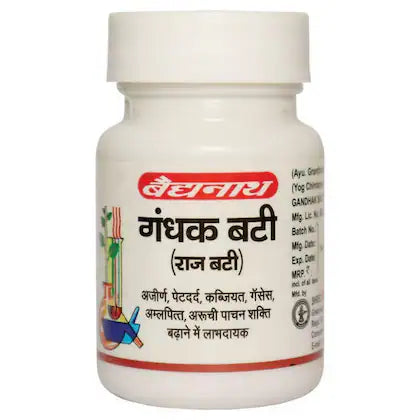 बैद्यनाथ गंधक बटी एक प्राकृतिक एंटासिड के रूप में कार्य करती है, जो एसिडिटी और पेट की परेशानी से राहत दिलाने में मदद कर सकती है। यह रक्त को शुद्ध करके और शरीर से विषैले पदार्थों को बाहर निकालकर स्वस्थ त्वचा को बढ़ावा देती है। यह औषधि पाचन में भी सुधार करती है, आंतों के स्वास्थ्य को बेहतर बनाती है और संभावित रूप से रोग प्रतिरोधक क्षमता को बढ़ाती है।