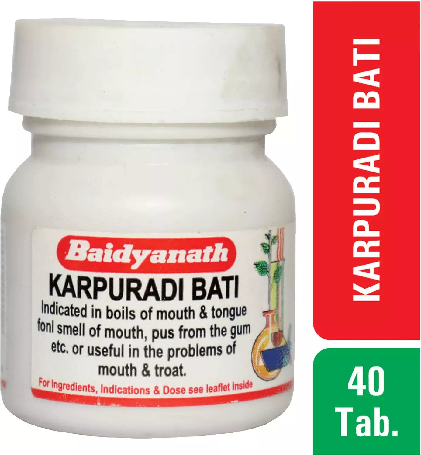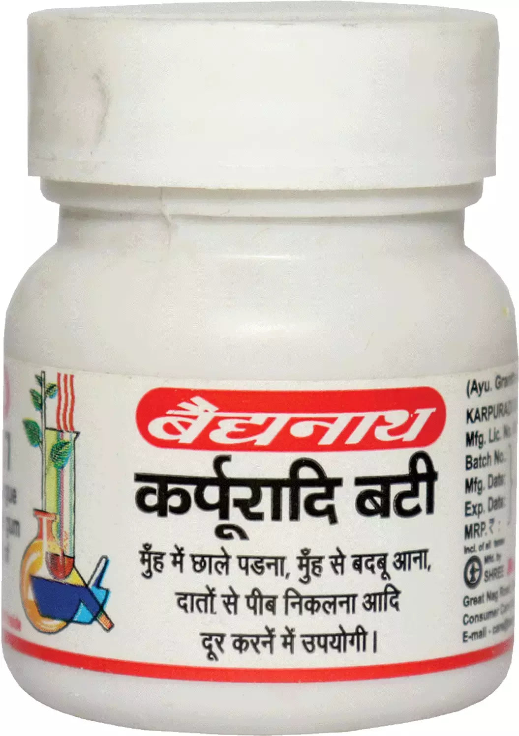 बैद्यनाथ कर्पूरादि बटी का उपयोग विशेष रूप से मसूड़े की सूजन, पायरिया और मुँह के छालों के उपचार के लिए किया जाता है। यह सांसों की दुर्गंध को दूर करके और मसूड़ों में मवाद बनने को कम करके मौखिक स्वच्छता में सुधार करने में भी मदद करती है। यह औषधि गले के संक्रमण और जीभ से संबंधित बीमारियों के लिए भी उपयोगी है।