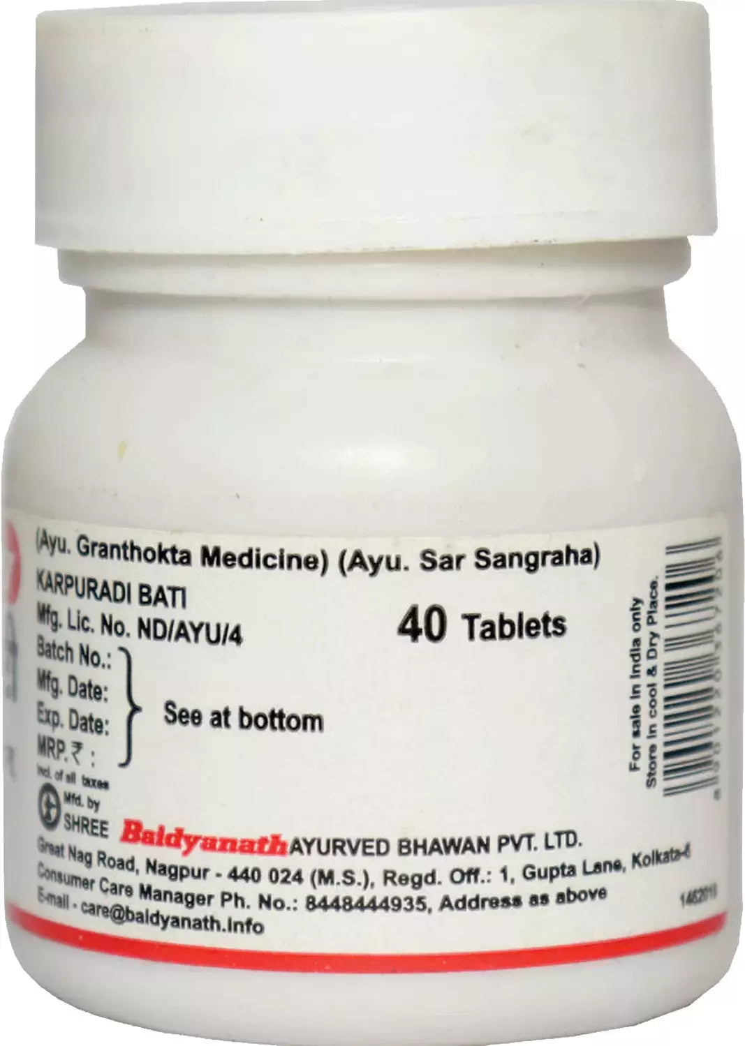 बैद्यनाथ कर्पूरादि बटी के उचित उपयोग के बारे में जानकारी उपलब्ध है, हालाँकि, उपयोग से पहले किसी योग्य स्वास्थ्य सेवा पेशेवर से परामर्श करना उचित है। गर्भवती या स्तनपान कराने वाली महिलाओं के लिए विशेष रूप से चिकित्सीय सलाह लेने की सलाह दी जाती है।