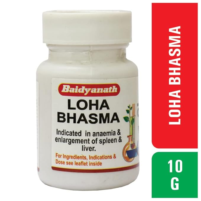 लौह भस्म एक प्रभावी लौह पूरक है जिसका उपयोग लौह की कमी और रक्तलायी रक्ताल्पता के उपचार में किया जाता है। यह लाल रक्त कोशिकाओं के निर्माण में सुधार करता है, रक्ताल्पता के लक्षणों से राहत देता है, भूख बढ़ाता है और गैर-खाद्य पदार्थों की लालसा को कम करता है। पीलिया (बिलीरुबिन कम करता है), कब्ज के साथ आईबीएस, गठिया, मधुमेह और पुराने बुखार में भी लाभकारी है।