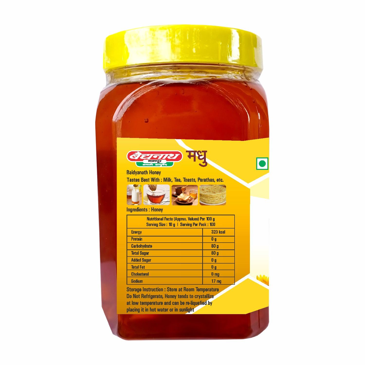बैद्यनाथ मधु पूरी तरह से शुद्ध और प्राकृतिक शहद से बना है, जो मधुमक्खियों द्वारा एकत्रित रस से प्राप्त होता है। इसमें कार्बोहाइड्रेट, प्रोटीन, अमीनो एसिड, विटामिन, खनिज, एंटीऑक्सीडेंट, फ्लेवोनोइड और एंजाइम का प्राकृतिक मिश्रण होता है जो शहद में स्वाभाविक रूप से मौजूद होते हैं। कुछ स्रोतों से संकेत मिलता है कि यह यूकेलिप्टस और लीची जैसे फूलों के रस से प्राप्त हो सकता है।