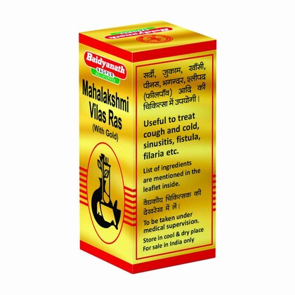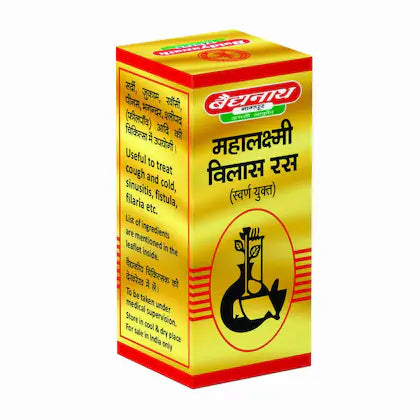 बैद्यनाथ का महालक्ष्मीविलास रस (SY) पारंपरिक रूप से पुरानी खांसी, साइनसाइटिस और गले के संक्रमण जैसी श्वसन संबंधी समस्याओं के प्रबंधन में उपयोग किया जाता है। यह तपेदिक, हर्निया, लिम्फ नोड्स के बढ़ने और मूत्र या उदर संबंधी विकारों में भी लाभकारी है।
