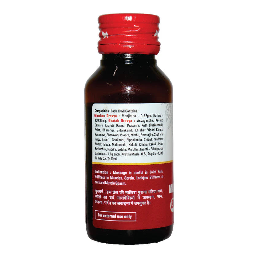 मुख्य सामग्रियों में आम तौर पर मैश (काला चना), तिल तेल (तिल का तेल), दशमूल, अश्वगंधा, कचूर, बाला मूल, जीवंती, देवदारु, रस्ना और प्रसारिणी शामिल हैं। कुछ फॉर्मूलेशन में अन्य सामग्रियां भी शामिल हो सकती हैं।