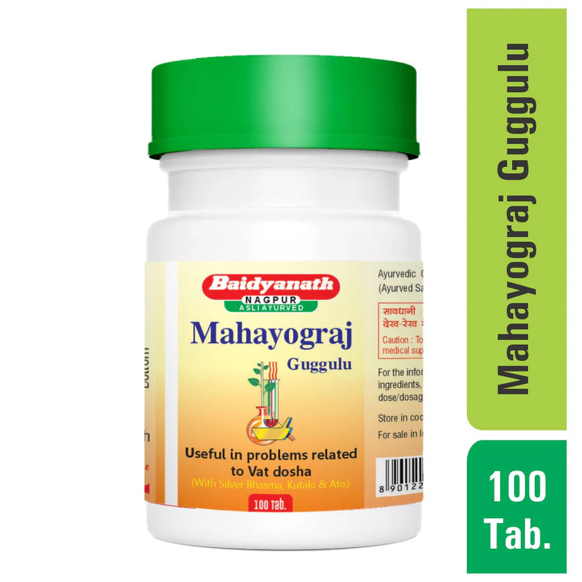 महायोगराज गुग्गुलु का उपयोग आमतौर पर पुराने वात विकारों के प्रबंधन के लिए किया जाता है जो मस्कुलोस्केलेटल और तंत्रिका तंत्र को प्रभावित कर सकते हैं। इसे गठिया, साइटिका, जोड़ों के दर्द और लिगामेंट संबंधी समस्याओं जैसी स्थितियों के लिए सुझाया जा सकता है। यह सूत्रीकरण बढ़े हुए वात दोष से जुड़े जोड़ों की अकड़न, मांसपेशियों में दर्द और तंत्रिका संबंधी असुविधा जैसे लक्षणों को दूर करने में मदद कर सकता है।