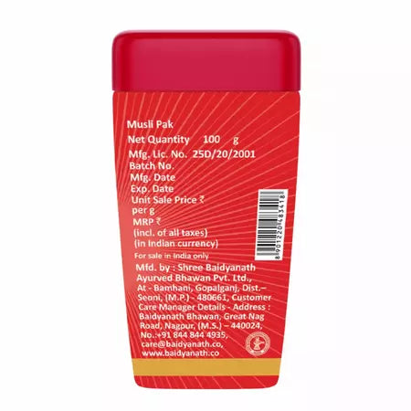 बैद्यनाथ मूसली पाक के उपयोग की जानकारी के लिए, किसी चिकित्सक या आयुर्वेदिक चिकित्सक से परामर्श करना उचित है ताकि व्यक्तिगत आवश्यकताओं के अनुसार उपयुक्त विधि निर्धारित की जा सके। उत्पाद की पैकेजिंग पर दिए गए निर्देशों का हमेशा पालन करें। एक स्वास्थ्य सेवा पेशेवर इस उत्पाद के उपयोग के बारे में मार्गदर्शन प्रदान कर सकता है।