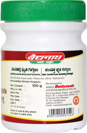 मुख्य सामग्रियों में शोधित गुग्गुलु, घी, त्रिकटु, त्रिफला, पिक्रोरिज़ा कुरोआ (कुटकी), नीम, गुडुची, पटोला, वासा और कंटकारी शामिल हैं। जड़ी-बूटियों और घी का यह मिश्रण पारंपरिक आयुर्वेदिक लाभ प्रदान करने के लिए सहक्रियात्मक रूप से काम करने के लिए डिज़ाइन किया गया है।
