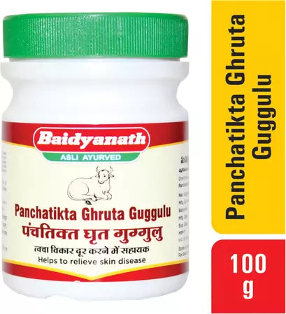 बैद्यनाथ पंचतिक्त घृत गुग्गुलु के संभावित लाभों में रक्त शुद्धि, सूजन कम करने और घाव भरने में सहायता करके त्वचा के स्वास्थ्य में सुधार शामिल है। यह हड्डियों और जोड़ों को मज़बूत बनाने, दर्द और सूजन को कम करने और जोड़ों के लचीलेपन में सुधार करने में मदद कर सकता है। इसके अलावा, यह पाचन में सुधार और कब्ज को दूर करने में भी मदद करता है।