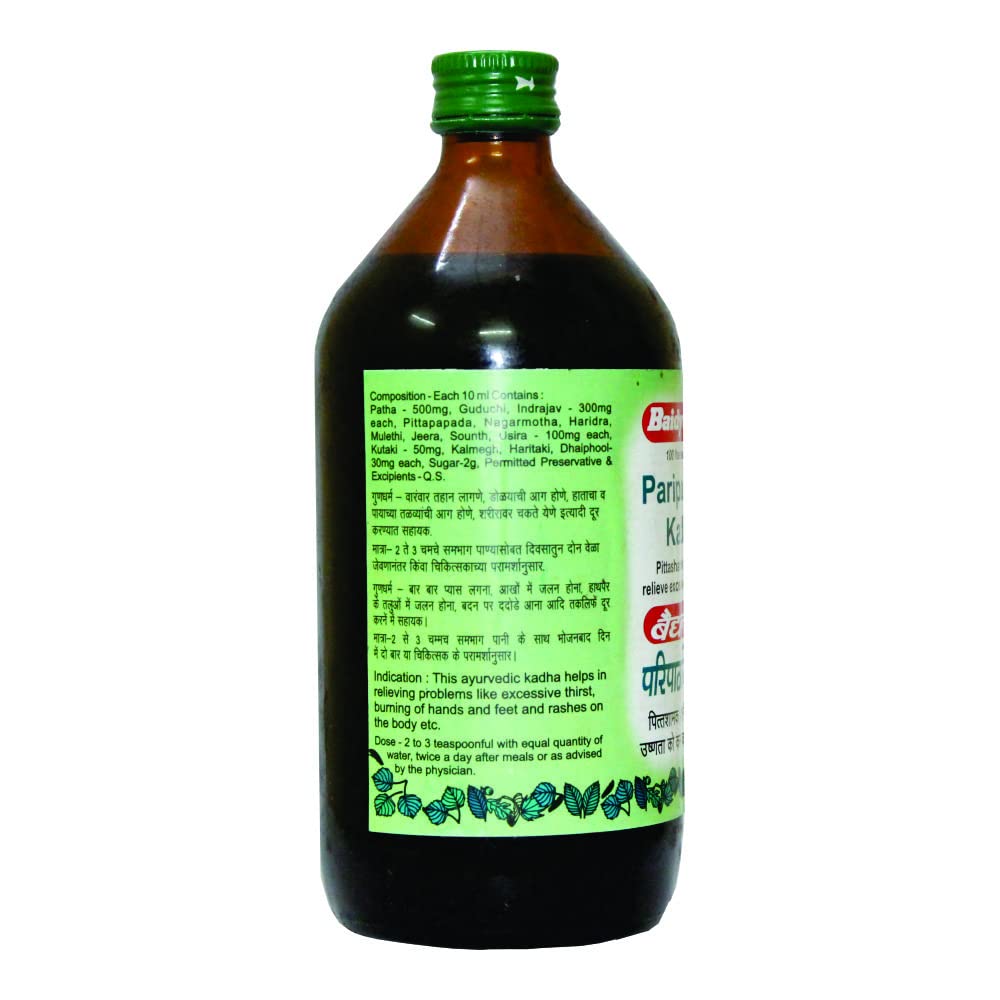 बैद्यनाथ परिपाठादि काढ़े के लाभों में पित्त विकारों को नियंत्रित करना, शरीर की अतिरिक्त गर्मी को कम करना और शरीर के विभिन्न अंगों में जलन को कम करना शामिल है। यह शरीर को विषमुक्त करने, त्वचा पर चकत्ते और छालों को नियंत्रित करने और संभावित रूप से प्रतिरक्षा प्रतिक्रिया और चयापचय को बढ़ाने में भी मदद करता है। यह काढ़ा पाचन में भी सहायक है और कब्ज व हाइपरएसिडिटी से राहत दिलाने में मदद करता है।