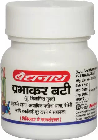 बैद्यनाथ प्रभाकर बटी हृदय संबंधी विभिन्न समस्याओं के लिए उपयोगी है, जिसमें हृदय की मांसपेशियों को मज़बूत करना और हृदय की कार्यप्रणाली को बेहतर बनाना शामिल है। इसका उपयोग सामान्य रक्तचाप और हृदय गति को बनाए रखने में मदद के लिए किया जा सकता है, जिससे धड़कन, अत्यधिक पसीना आना और बेचैनी जैसे लक्षणों से राहत मिल सकती है। इसके अतिरिक्त, इसका उपयोग फेफड़ों के स्वास्थ्य को बेहतर बनाने और नींद में खलल, थकान और सामान्य दुर्बलता से राहत दिलाने में भी किया जा सकता है।