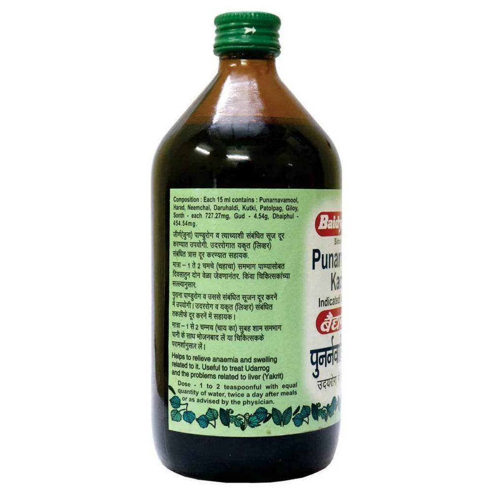 बैद्यनाथ पुनर्नवादि काढ़ा के लाभों में यकृत और मूत्र प्रणाली के समग्र कार्य में सुधार शामिल है। यह बढ़े हुए यकृत और प्लीहा के लिए भी लाभकारी है और गुर्दे की अक्षमता के कारण होने वाली सूजन को प्रभावी ढंग से कम कर सकता है। एक प्राकृतिक मूत्रवर्धक के रूप में, यह मूत्र उत्पादन बढ़ाता है, वजन प्रबंधन में सहायता करता है, और एनीमिया और पेट की सूजन से राहत दिलाने में मदद करता है।