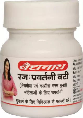 पारंपरिक रूप से माना जाता है कि यह आयुर्वेदिक औषधि मासिक धर्म के दौरान उचित प्रवाह और कम रक्तस्राव को ठीक करने में मदद करती है। यह नियमित अंडोत्सर्ग और मासिक धर्म स्राव को उत्तेजित कर सकती है, जिससे प्रजनन स्वास्थ्य में सुधार हो सकता है। बैद्यनाथ राजप्रवर्तनी बटी का पारंपरिक रूप से ऐंठन-निवारक और हल्के दर्द निवारक के रूप में भी उपयोग किया जाता है, जो मासिक धर्म के दौरान दर्द और बेचैनी से राहत दिलाने में मदद कर सकता है।