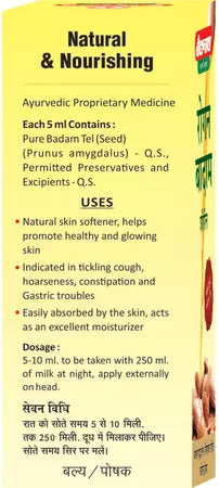 बैद्यनाथ रोगन बादाम तेल को निर्देशानुसार मुँह से लिया जा सकता है या त्वचा पर लगाया जा सकता है। मुँह से लेने के लिए, इसे दूध में मिलाकर या अन्य खाद्य पदार्थों या पेय पदार्थों में मिलाकर लिया जा सकता है। त्वचा पर लगाने के लिए, इसे सीधे त्वचा या सिर पर लगाकर मालिश की जा सकती है। हमेशा उत्पाद लेबल पर दिए गए निर्देशों का पालन करें या व्यक्तिगत सलाह के लिए किसी स्वास्थ्य सेवा पेशेवर से सलाह लें।