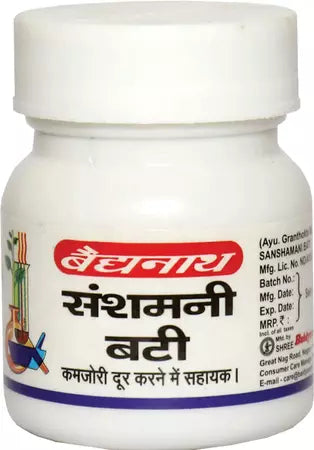 बैद्यनाथ संशमनी बटी का मुख्य घटक गुडुची (टिनोस्पोरा कॉर्डिफोलिया) का सत्व है, जिसे गिलोय भी कहा जाता है, जिसे आयुर्वेद में इसके संभावित रोग प्रतिरोधक क्षमता बढ़ाने वाले और कायाकल्प करने वाले गुणों के लिए जाना जाता है। अतिरिक्त संभावित अवयवों में मुस्तक (साइप्रस रोटंडस), पिप्पली (लंबी मिर्च), अतीस (एकोनिटम हेटरोफिलम), और गिलोय (गुडुची) का काढ़ा शामिल हो सकता है। कुछ मिश्रणों में लौह भस्म (लौह भस्म), अभ्रक भस्म (अभ्रक भस्म), और स्वर्ण माक्षिक भस्म (एक कैल्सिफाइड खनिज पदार्थ) जैसे खनिज मिश्रण भी हो सकते हैं।