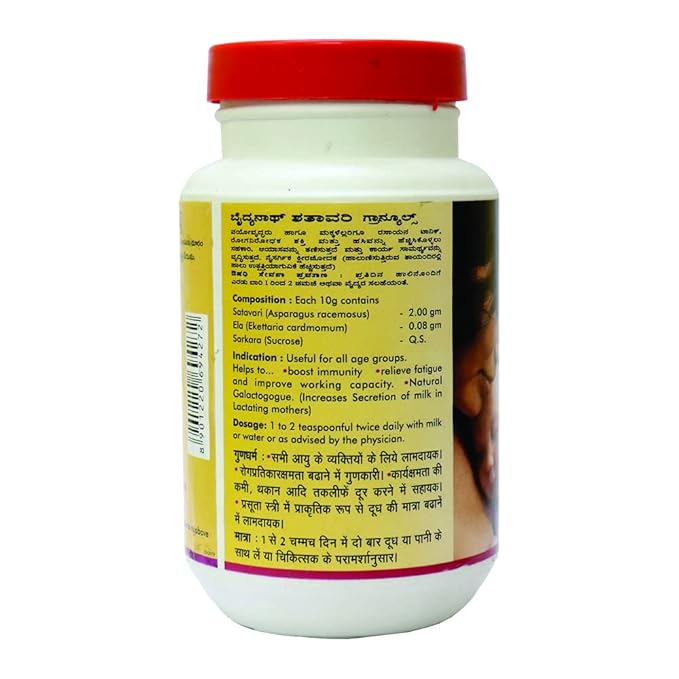 बैद्यनाथ शतावरी ग्रैन्यूल्स का उपयोग अपर्याप्त दूध उत्पादन वाली स्तनपान कराने वाली माताओं में स्तनपान बढ़ाने और रोग प्रतिरोधक क्षमता बढ़ाकर तथा थकान दूर करके प्रसवोत्तर स्वास्थ्य लाभ में सहायता के लिए किया जाता है। यह आयुर्वेदिक मिश्रण समग्र ऊर्जा स्तर में भी सुधार कर सकता है।