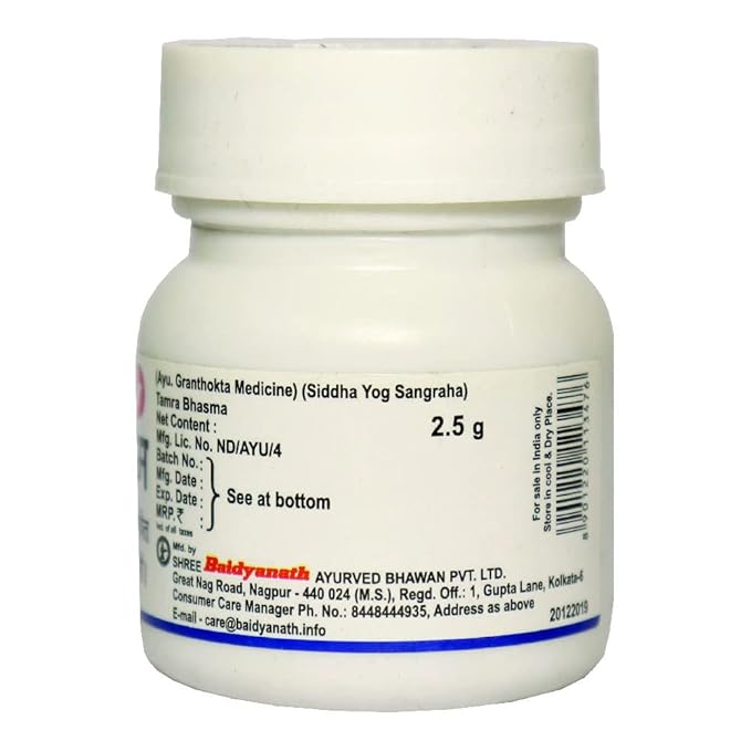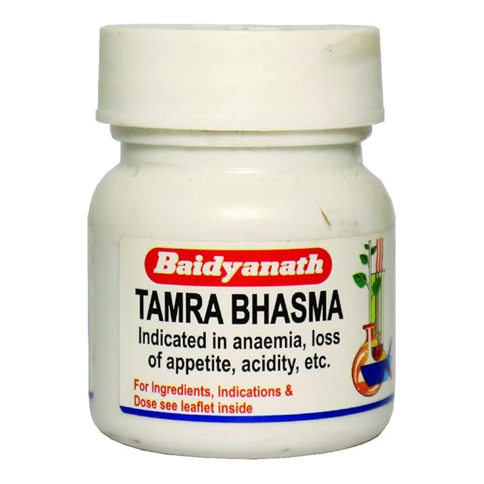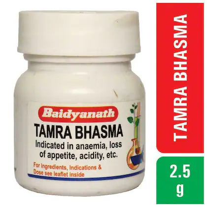 ताम्र भस्म में तांबे के सूक्ष्म कण होते हैं जिन्हें एलोवेरा और नींबू के रस सहित हर्बल रसों के साथ संसाधित किया जाता है। फिर इसे उच्च तापमान पर संसाधित करके कॉपर कैल्क्स बनाया जाता है।