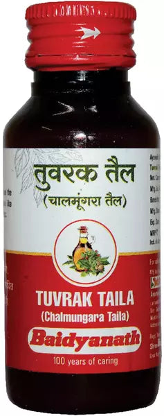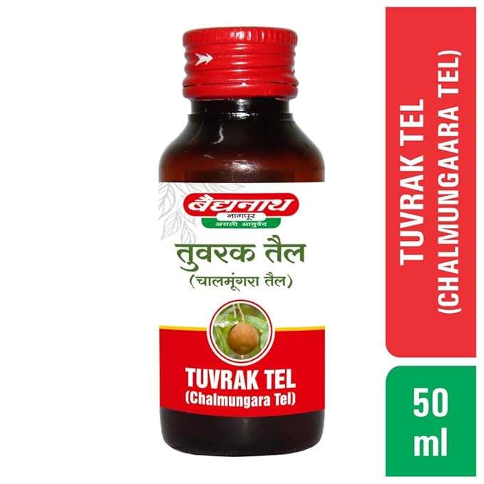 बैद्यनाथ तुवरक (चालमुंगरा) तेल के संभावित लाभों में त्वचा की सूजन, खुजली और चकत्ते को कम करने, घावों को तेज़ी से भरने और समग्र त्वचा स्वास्थ्य को बेहतर बनाने में मदद करना शामिल है। ऐसा माना जाता है कि यह फंगल संक्रमण को नियंत्रित करने और त्वचा को साफ़ करने में मदद करता है।