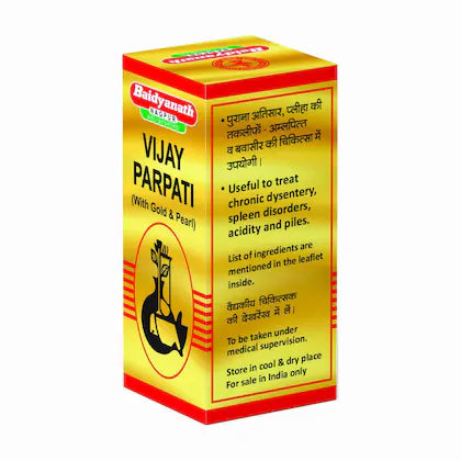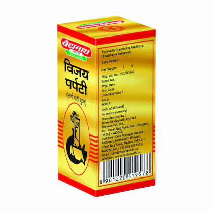 विजय पर्पटी पुराने और तीव्र बुखार से राहत दिलाने में मदद करती है, यकृत के कार्य को बेहतर बनाती है और पाचन संबंधी परेशानियों को कम करती है। यह पीलिया, एनीमिया और मूत्र मार्ग संबंधी समस्याओं को कम करने में भी मदद कर सकती है।