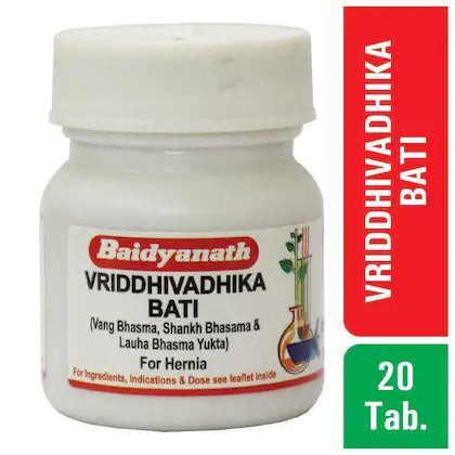 बैद्यनाथ वृद्धिवाधिका बटी सूजन को कम करके और पेट की मांसपेशियों को मज़बूत बनाकर हर्निया और हाइड्रोसील के प्रबंधन में मदद करती है। यह पाचन स्वास्थ्य को भी बेहतर बनाती है, पोषक तत्वों के बेहतर अवशोषण में मदद करती है और गैस व सूजन जैसी समस्याओं को कम करती है। इसके अतिरिक्त, यह स्वस्थ कोशिकाओं के विकास में सहायक हो सकती है और समग्र जीवन शक्ति और शक्ति में योगदान दे सकती है।