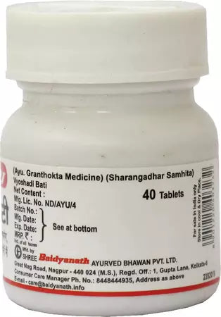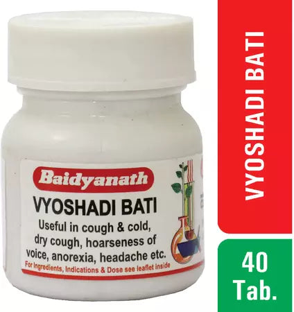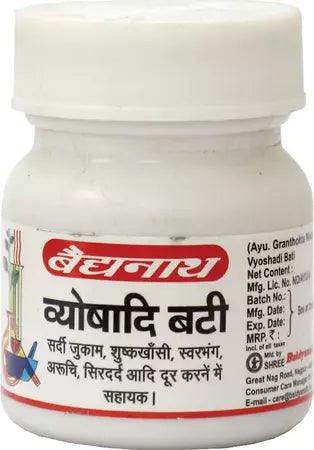बैद्यनाथ व्योषादि बटी को सामान्य सर्दी-ज़ुकाम के लक्षणों से व्यापक राहत प्रदान करने वाला माना जाता है, जिसमें नाक की भीड़ को दूर करना और सूजन को कम करना शामिल है। यह श्वसन स्वास्थ्य को बेहतर बनाने और अस्थमा, ब्रोंकाइटिस और साइनसाइटिस जैसी स्थितियों के प्रबंधन में प्रभावी है। यह सूत्रीकरण पाचन को भी बेहतर बनाता है और भूख को बढ़ाता है, जिससे समग्र स्वास्थ्य में सुधार होता है।