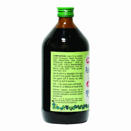 Key ingredients include Punarnava (Boerhavia diffusa), Giloy (Tinospora cordifolia), Bala (Sida cordifolia), and Chitraka (Plumbago zeylanica). Other components often found in the preparation include Patha (Cyclea peltata), Dhataki Pushpa (Woodfordia fruticosa), Kantakari (Solanum xanthocarpum), Maricha (Black Pepper), and Gud (Jaggery).